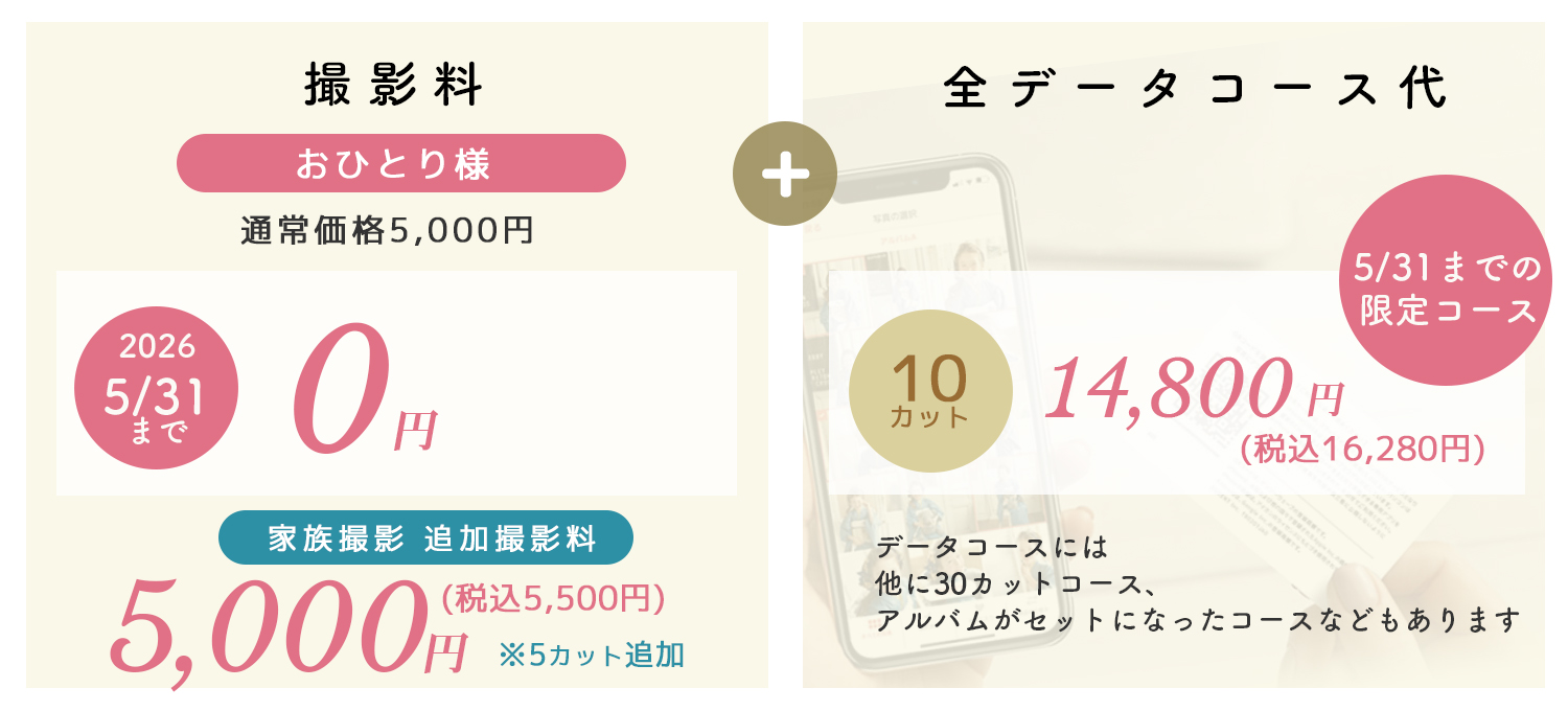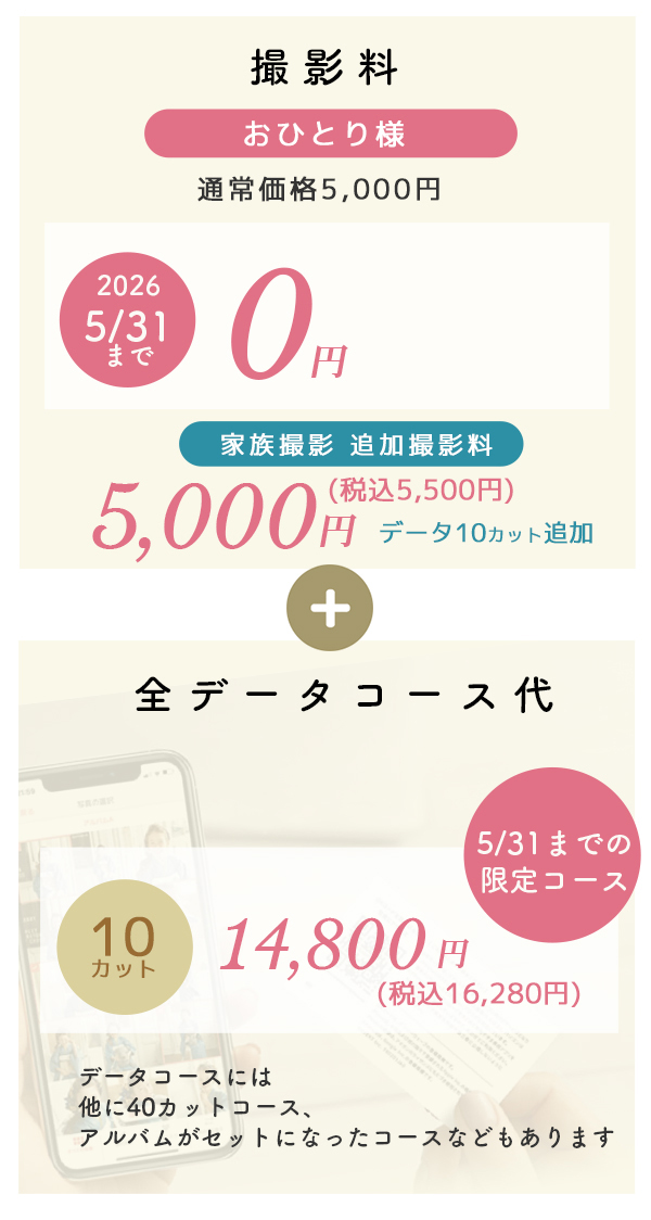撮影料とデータコース代の合計となります。